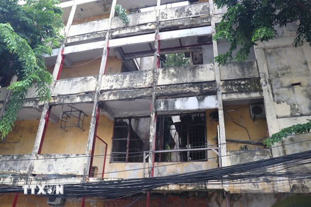 Một góc chung cư Vĩnh Hội (phường Vĩnh Hội) bao gồm lô A, B, C được xây dựng từ trước 1975 được xác định tình trạng cấp D – nguy hiểm bởi tình trạng xuống cấp nặng. (Ảnh: Thanh Vũ/TTXVN)